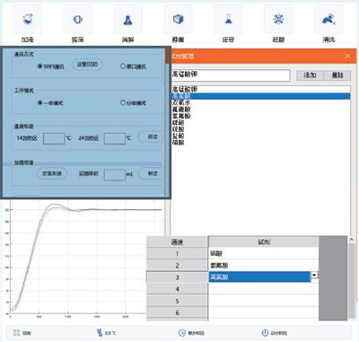 全中文操作界面,消解方案模块式设计,直接拖拽进行设置;升温曲线及实验进程可实时显示,消解状态一目了然;试剂管理、方法建立等轻松操作,摆脱重复繁琐的操作程序,节省实验人员工作时间、提高工作效率。