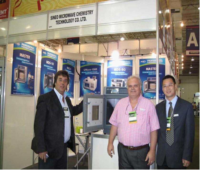 2011年,新仪微波化学科技有限公司参加了中东(迪拜)仪器展,南美(巴西)仪器展以及印度五城市巡展等海外展会。不仅使传统市?。ㄈ缬《龋臀?,俄罗斯,土耳其和韩国等)的客户群日趋稳固,更带动了英国、爱尔兰、加拿大等欧美新兴市场的销售。