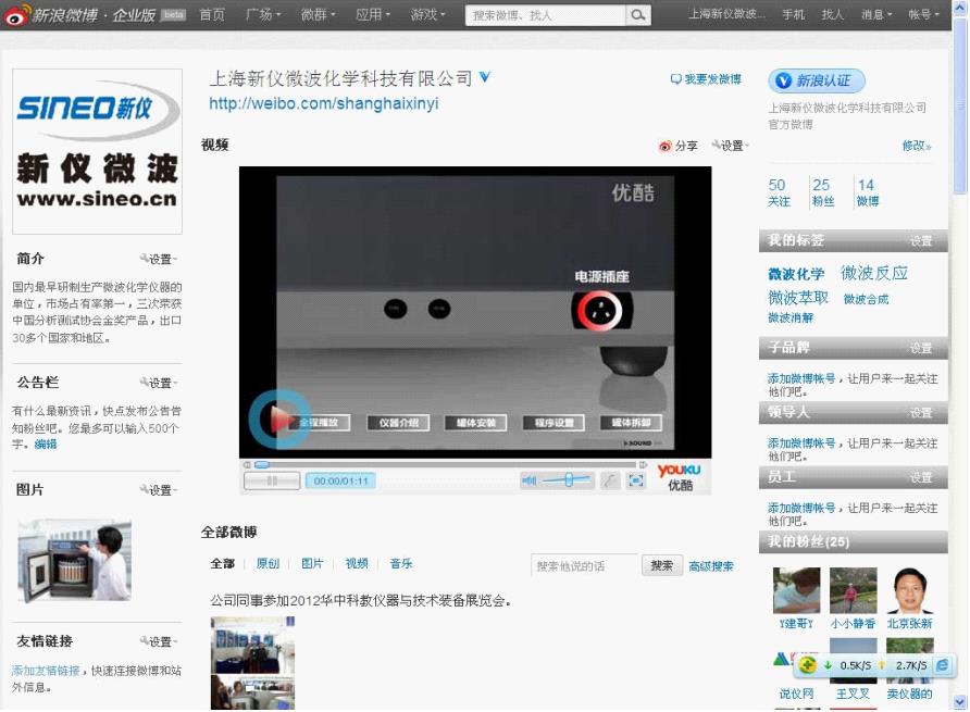 为了更好得与广大用户朋友沟通交流,上海新仪微波化学科技有限公司正式开通了经新浪认证的公司官方微博。