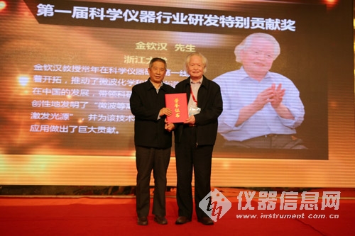 2014年4月18日晚,中国科学仪器行业的“达沃斯论坛”——2014中国科学仪器发展年会(ACCSI 2014)于晚宴上公布了“第一届科学仪器行业研发特别贡献奖”获奖名单。中国微波化学第一人金钦汉教授获奖,这是科学仪器行业对微波化学仪器领域的一大肯定与支持。