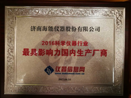 据仪器信息网报道,本次评选包含千余家参展商,经过各项评估来确定获奖企业。颁奖盛会,海能仪器荣获2016科学仪器行业最具影响力国内生产厂商。