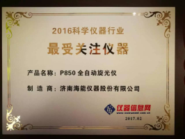 2、海能P850全自动旋光仪获2016科学仪器行业最受关注仪器奖。