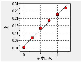 标准使用液:准确吸取适量镉标准储备液50mL容量瓶,硝酸溶液(2%)定容至刻度得到含量分别为0mg/L、1μg/L、2μg/L、3μg/L4μg/L5μg/L的标准系列溶液。