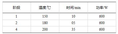 使用硝酸、盐酸和氢氟酸作为实验的消解试剂,称取硅钢样品0.1g(精确至0.1mg)于消解罐中,加入4.5mL盐酸、1.5mL硝酸、2mL氢氟酸,静置5min左右,组装消解罐,按照如下设置参数进行实验: