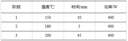 称取三元材料0.2g(精确至0.1mg),加入2mL硝酸和6mL盐酸,静置10min左右,待无明显反应后,组装消解罐,按照如下设置参数进行实验: