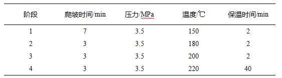 使用硝酸、氢氟酸作为实验的消解试剂,称取白石墨样品0.1g(精确至0.1mg)于消解罐中,加入5mL硝酸、5mL氢氟酸,静置5min左右,组装消解罐,按照如下设置参数进行实验:
