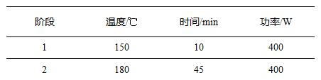 称取矿物油样品0.2g(精确至0.1mg)置于消解罐底部,加入10mL硝酸,将消解罐放置在赶酸器上120℃加热30min左右,待黄烟冒尽后取下冷却,组装消解罐,按照如下设置参数进行实验: