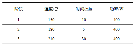 称取奥美沙坦酯氢氯噻嗪片样品一片,质量约0.22g(精确至0.1mg),加入5mL硝酸、2mL盐酸、1mL氢氟酸和1mL过氧化氢,静置15min左右,待无明显反应后,组装消解罐,按照如下设置参数进行实验: