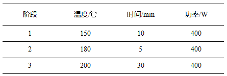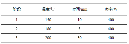 称取钕铁硼磁体样品约0.1g(精确至0.1mg),加入6mL硝酸和2mL盐酸,静置15min左右,待无明显反应后,组装消解罐,按照如下设置参数进行实验: